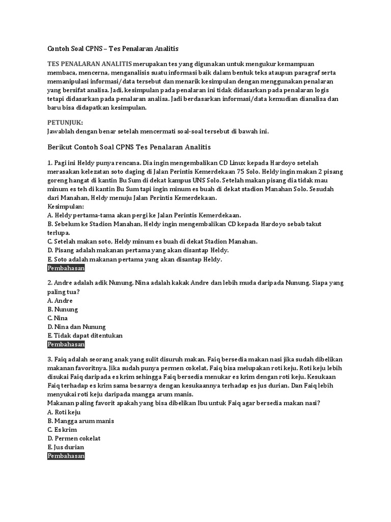 Contoh Soal Penalaran Analitis - Soal Latihan Dan Pembahasan Tiu Aritmatika Geometri Dan Penalaran Analitis Bagian 7 Duniabelajar - We did not find results for:. Maybe you would like to learn more about one of these? Check spelling or type a new query. We did not find results for: