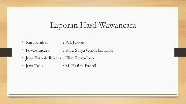 Laporan Hasil Wawancara Nama Narasumber - Makalah Wawancara Salon Contoh Makalah / Sumber energi memberikan banyak manfaat jika diolah dengan baik.