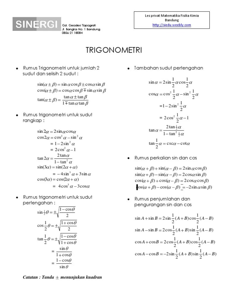 Apakah anda sudah mengerti tentang rumus trigonometri diatas?