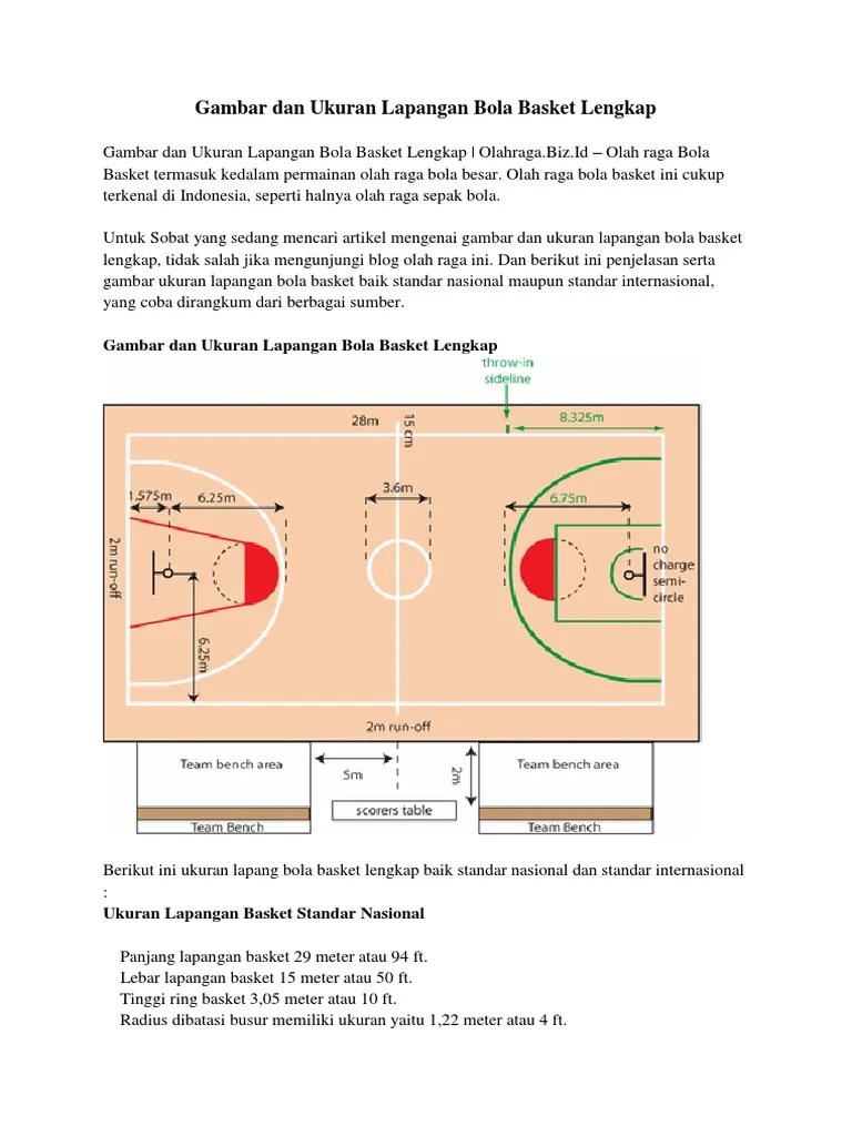 Gambar dan ukuran lapangan bola basket beserta keterangannya yang sesuai dengan standar fiba secara lengkap kami jelaskan dalam artikel ini. Berapa sih ukuran lapangan basket standar internasional ? Panjang lapangan basket terdapat sedikit perbedaan dalam hal standar panjang lapangan bola basket yang digunakan di indonesia dan di dunia internasional. Fiba adalah induk olahraga basket internasional yang telah menerapkan banyak aturan baku terkait olahraga bola basket. Ukuran lapangan untuk pertandingan bola .